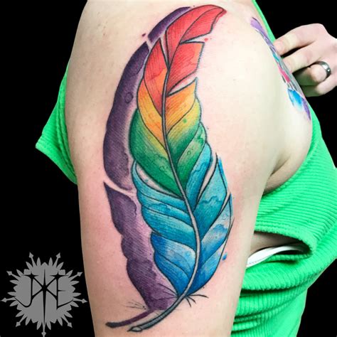 Rainbow feather Tatuajes de acuarela, Tatuajes de plumas, Tatuajes de