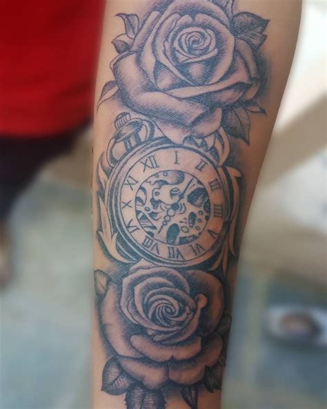 Rose Tattoo Clock. Web the clock in the clock rose tattoo stands as a universal symbol, reminding individuals of the importance of. They say that the sky’s the limit, and similarly, there is no limit to how.