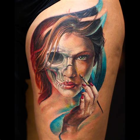 Top more than 73 half woman half skull tattoo best in.eteachers