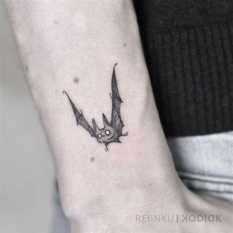 Small Bat Tattoo. Web a sign of intuition and inner depth bats use echolocation to navigate their environment, a skill that has earned them. Minimalist & small bat tattoo.