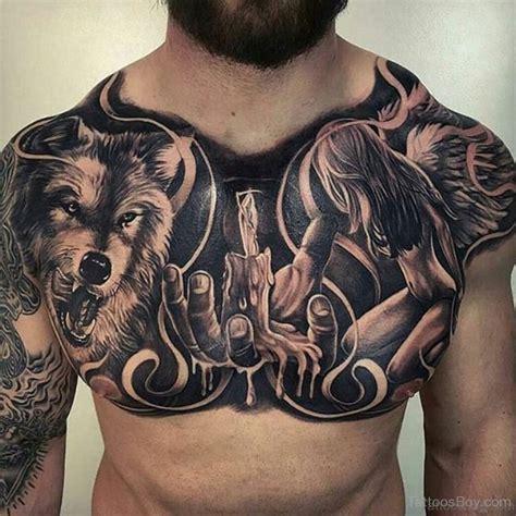 Wolf Tattoo Chest. Web to help you uncover wolf tattoo ideas and inspiration, check out the following gallery of the top 115 wolf tattoo designs. Web wolf chest tattoos are symbols of primal might, and this masculine firepower is geared towards guys who know the.