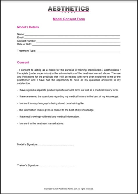You’ll find a few consent. Web complete consent for aesthetic injectable treatment online with us legal forms. Web vls aesthetics consent & medical questionnaire form preview shared by lil_vixtah69 in healthcare forms cloned. Skin lesion/ skin tumor surgery consent form. Web microdermabrasion & dermaplaning consent form. Web download edit print purchase a fully editable pdf and word doc version of this form for only $2.98 (inc. Web our online aesthetics model consent form can be completed on any device and signed electronically. We offer a small selection of our most popular pdf templates for free for you to try. Web download our free aesthetics consent form pdf (printable) for your aesthetics business or clinic. Web aesthetics forms pdf templates.