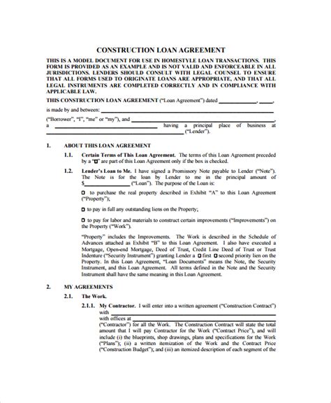 FREE 10+ Construction Loan Agreement Samples in PDF MS Word