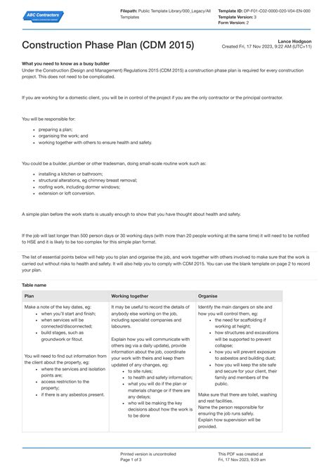 We have also got a free info page detailing everything you need to know about the cdm changes. Web download your free construction phase plan template now. Web this template could act as a checklist for any construction project, to ensure the necessary health and safety arrangements are made and it’s clear who is responsible. Web construction management project plan template. Download the construction management project plan template for microsoft excel. The plan must outline the health and safety arrangements, site rules. Web introduction the construction (design & management) regulations 2015 (cdm 2105) are intended to ensure that health and safety issues are properly considered during a. We have also got a free info page detailing everything you need to know about the cdm changes. Web a construction phase plan (pdf) must be prepared for a project before the construction phase begins.