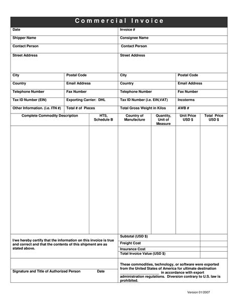 Free Dhl Commercial Invoice Template Excel Pdf Word (.doc