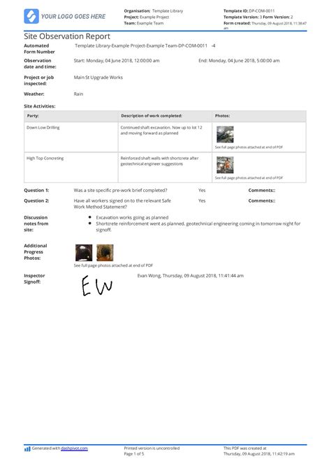 Web following a brief description of the project and the job site, a safety observation report prompts the respondent to pick one of three types of observations to report, including. Web grab our site visit report templates today for google docs, ms word, and more. Web following a brief description of the project and the job site, a safety observation report prompts the respondent to pick one of three types of observations to report, including. Web this site observation report template is free to use and makes the process of capturing and recording everything happening on site quick, easy and organised. Outline various site visit details by incorporating our example documents in doc, pdf, or other. Web the site observation report template should serve as the observation framework, and should guide but not constrain the observers movements and actions. Web this construction site visit report example shows you what a typical site visit looks like, with important information about site conditions, work in progress, observations.