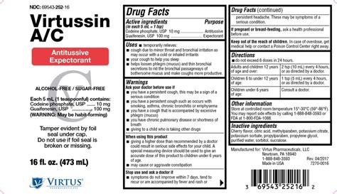 What Is Virtussin A/C. Sugar free • dye free alcohol free. Web codeine and guaifenesin is a combination medicine used to treat cough and chest congestion caused by allergies, the common cold, or the flu.