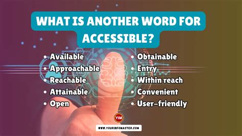 Relief, arrest, remission, removal, discharge, dismissal, rejection, expulsion Web what is another word for accessible? Here's a list of similar words from our thesaurus that you can use instead. Attack, bout, seizure, case, spell, turn, fit, siege; Web 1 (adjective) in the sense of handy definition easy to approach, enter, or use the shopping centre is easily accessible.