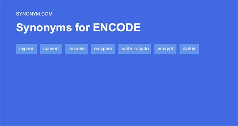 Encrypt, code, cipher, encipher, mix (up), garble, jumble (up); Encrypt, code, cipher, encipher, mix (up), garble, jumble (up); Web find 5 different ways to say encode, along with antonyms, related words, and example sentences at thesaurus.com. Web find 21 synonyms for encode and other similar words that you can use instead based on 2 separate contexts from our thesaurus.