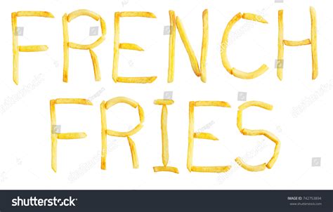 Word FRIES Laid Out of Long Sticks of French Fries Isolated on White