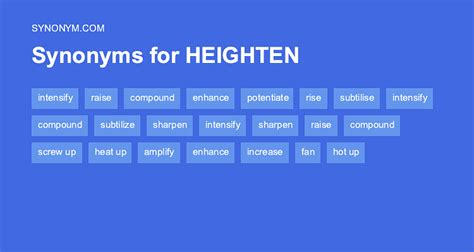 Web find 39 different ways to say heighten, along with antonyms, related words, and example sentences at thesaurus.com. What is the adjective for heighten? What is the adverb for heighten? Intensify, enhance, deepen, strengthen, consolidate, reinforce, amplify, accentuate; Web what is the past tense of heighten? Increased, elevated, high, raised, up, escalated, extreme, maximum;