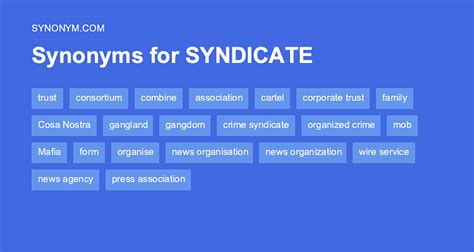 Another Word For Syndicate. Web find 1,300 synonyms for syndicate and other similar words that you can use instead based on 6 separate contexts from our thesaurus. Mafia, gang, network, conspiracy, crew, mob, clan, ring;