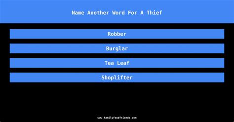 Web what is another word for thief? Contexts one who carries out a theft a person who has been tried and convicted of a felony noun one who carries out a theft robber bandit. Web find 39 different ways to say thief, along with antonyms, related words, and example sentences at thesaurus.com. Robber, burglar, embezzler, housebreaker, pickpocket, pilferer, plunderer, shoplifter, stealer,. Web synonyms for thief: Robber, burglar, kidnapper, stealer, pirate, smuggler, pincher, bandit, hijacker, kidnaper. Synonyms for thief (other words and phrases for thief). Another way to say thief?