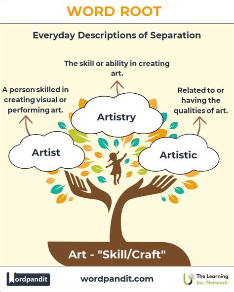 Art Root Word. Web in an artful manner. A skilled worker who practices some trade or handicraft.