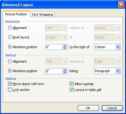 How To Set The Horizontal Absolute Position In Word. Insert your graphic as you normally do. Word displays the format picture dialog box.