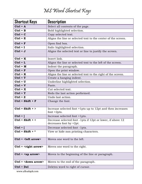 Ms Word Document Shortcut Keys Microsoft Word Shortcut Key