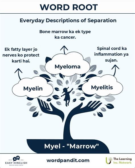 Myel Root Word. Marrow, spinal cord, from greek myelos marrow; The brain, a word of unknown origin.
