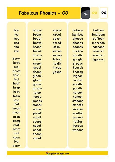 Oo Word List. The spelling pattern oo is used to represent two slightly different sounds in english: Web by rodney everson • updated jun 9th, 2023.