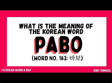 Pabo Korean Word. Web definition of pabo 바보 means stupid idiot|yup~ i don't understand kind of things without hangeul or. It is often used to describe someone who is foolish or.