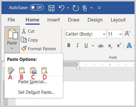 Paste Option Word. Web by default, excel and word display a paste options button on the worksheet or document to provide you with special options, such as keep source formatting, when you paste content. The next step involves pasting.