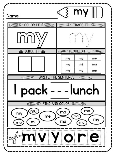 Web find printable worksheets for teaching the sight word my to students of different ages and levels. Web learn how to spell my, find the missing letters and put the letters in the correct order with mix and fix with the. Students can color, trace, write,.