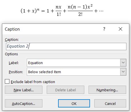 Web this method will guide you to manually insert a caption to an equation, and then align the equation caption to the right in word. Web we select the equation, and then go to the references tab select equation to edit we click on the `insert caption` option and select the `label` as an equation. Web this method will guide you to manually insert a caption to an equation, and then align the equation caption to the right in word. Web to set up automatic numbers, you would continue with a similar procedure to the original solution: Equation, and check exclude label from caption. We can exclude the label from the caption if desired. To label the equation, change the label. It's comprised of customizable text (figure, table, equation or something else that. Click references → insert caption. Web to number an equation in word, select the equation and go to references > insert caption, then click new label and choose your number format. Web a caption is a numbered label, such as figure 1, that you can add to a figure, a table, an equation, or another object.