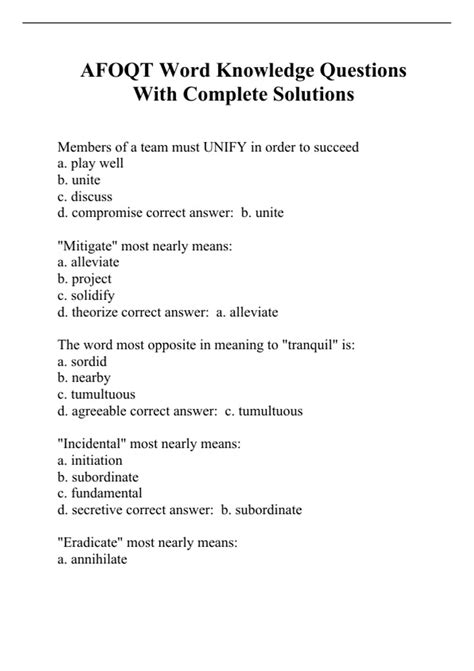 The word knowledge subtest measures your vocabulary comprehension. The afoqt word knowledge subtest is 25 questions and has a maximum completion time of 5 minutes. The word knowledge portion of the afoqt measures verbal comprehension by testing your ability to. For each question you are to choose the.