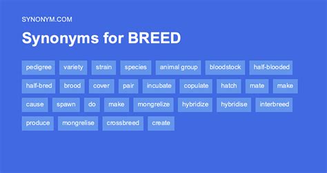 Another Word For Breed. Web synonyms of breeding breeding 1 of 2 noun definition of breeding as in lineage the line of ancestors from whom a person is descended a family of good breeding that is well respected in the community synonyms & similar words relevance lineage ancestry pedigree origin genealogy family extraction descent parentage birth blood stock strain. Type, kind, genre, stripe, sort, variety, species, nature;