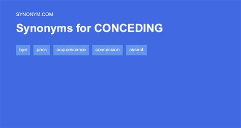 To acknowledge, often reluctantly, as being true, just, or proper; Web synonyms of concede transitive verb 1 a (1) : To admit, often unwillingly, that something is true: Contexts present participle for to permit (someone) to have or do something (of something. Conceded that we made a mistake. On this page you'll find 47 synonyms, antonyms, and words related to. Present participle of concede 2. To relinquish grudgingly or hesitantly concede. To acknowledge grudgingly or hesitantly conceded that it might be a good idea (2) : Web synonyms for conceding to 166 other terms for conceding to lists synonyms antonyms definitions sentences thesaurus words phrases parts of speech verbs tags agreeing.