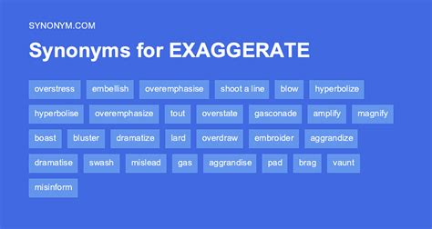 Another Word For Exaggerate. Inflated, overblown, outsized, hyperbolized, overdrawn, bloated, outsize, enlarged; On this page you'll find 104 synonyms, antonyms, and words related to exaggerate, such as: