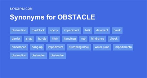 Another Word For Obstacle. ['ˈɑːbstəkəl'] something immaterial that stands in the way and must be circumvented or surmounted. On this page you'll find 81 synonyms, antonyms, and words related to obstacle, such as: