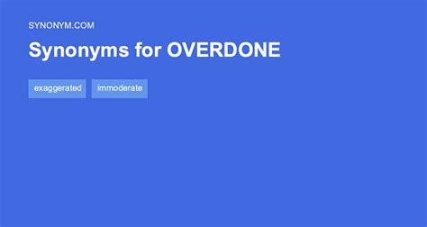 Another Word For Overdone. Web another way to say overdone? In fact, all the panic about the drought in britain was overdone.