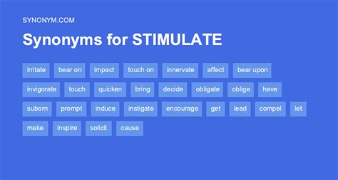 Stimulus, incentive, encouragement, inducement, stimulant, excitement, spur, prod; Web find 3,035 synonyms for stimulate and other similar words that you can use instead based on 8 separate contexts from our thesaurus. Boring, tedious, tiresome, unexciting, dull, monotonous, uninteresting, dreary On this page you'll find 90 synonyms, antonyms, and words related to stimulating, such as: Arouse, provoke, stir, energize, invigorate, enliven, excite, activate; Exciting, breathtaking, interesting, thrilling, intriguing, inspiring, exhilarating, electrifying; Kill, dampen, dull, deaden, undermine, weaken, damp, inhibit Web synonyms & similar words relevance arouses stirs provokes activates energizes animates invigorates excites awakens enlivens inspires vitalizes electrifies quickens motivates vivifies drives revives strengthens triggers propels jump. Stimulus, incentive, encouragement, inducement, stimulant, excitement, spur, prod; Appealing, challenging, exhilarating, hectic, inspiring, and interesting. Web find 4,228 synonyms for stimulating and other similar words that you can use instead based on 21 separate contexts from our thesaurus.