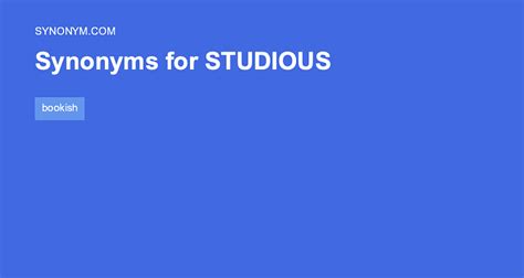 Another Word For Studious. On this page you'll find 60 synonyms, antonyms, and words related to studious, such as: Bookish, scholarly, assiduous, industrious, diligent, academic, bookish, attentive;