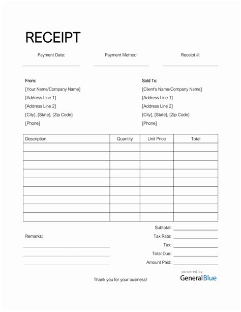 Blank Receipt Template Word. A receipt is made after a transaction has occurred, detailing the price of the goods or services along with any taxes, discounts, shipping fees, or other line items. As a word document, a typeable pdf, and an excel spreadsheet.