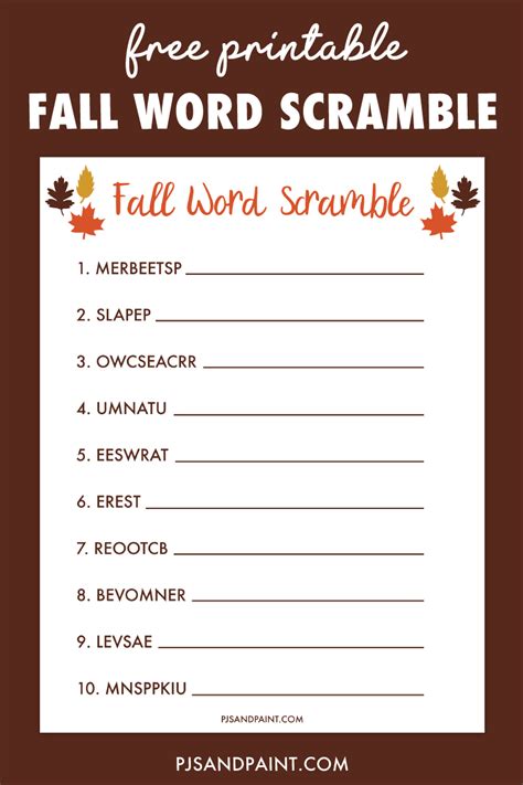 Free Printable Fall Word Scramble Puzzle