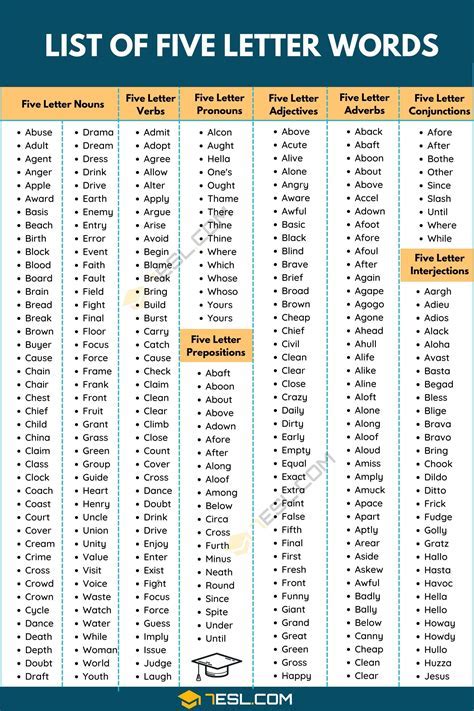2000+ Common 5 Letter Words List Five Letter Words with These Letters