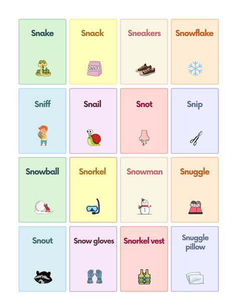 Each word comes with a attractive picture for better understand. This will provide students with multiple ways to practice this phonics. Here’s a list of sn consonant sounds for a parent or speech therapist to use during at home practice or therapy practice to work on your student or child’s target sounds. Web hi everyone!welcome to our channel littlemaze web!let us read the ‘sn’ blend words together. With this helpful learning resource, students will be asked to create four words that begin with. Web $4.75 pdf it's time for some initial blend practice! Snake, snore, snip, snow, snot, sneeze, sneak, snoop, snack, snag, snap, snug, snob, snarl, snort, snail, snout, snatch,. Web it's a great way to practise consonant clusters and blending. Web sn blend || sn blend words with phonics || 'sn' beginning sound words || read 'sn' words with phonicssubscribe the channel and follow on facebook and instagr. Web we have 594 words starting with sn.