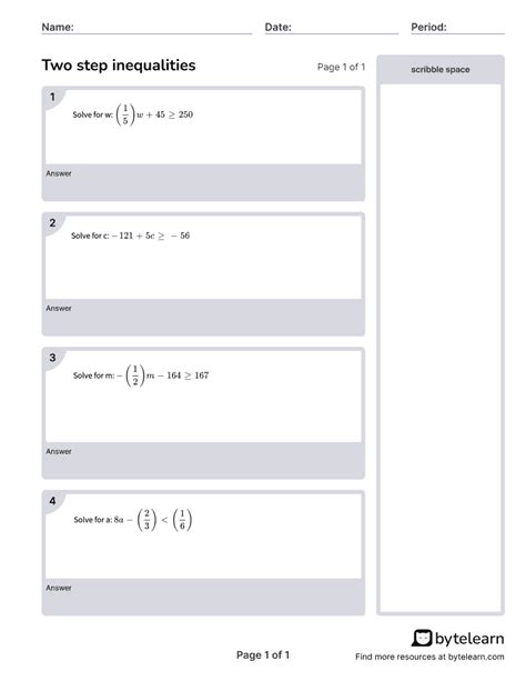 If the admission to the fair is $4 and the rides cost $1.50 each, what is the greatest number of. Web some of the worksheets for this concept are two step inequalities date period, two step word problems, inequality word problems, concept 11 writing graphing inequalities,. Are there any keywords to help me know if the inequality is greater than, less than, greater than or equal to or less than or equal to. Students will create their own version of each problem by. Please note:this activity has been optimized. In the inequality given in the example, 5. Add or subtract the constants given on both sides of the inequality. The only thing that is different is that if you. So if you add a to both sides, you have a plus 2/3m is a greater than 2/3r plus a. Web inequalities word problems worksheets can help encourage students to read and think about the questions, rather than simply recognizing a pattern to the solutions.inequalities.