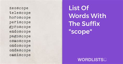 Browse through this helpful list and find the best word you may never have heard of. Word helpers if that's what you're looking for. To watch, to look at. Web list of suffixes ending in scopy or scope. Having the power to make objects that are far away appear to be closer Check our scrabble word finder, wordle solver, words with friends cheat dictionary, and wordhub word solver to find words that. Microscope (n) an optical instrument used for viewing very small objects. Suffix, suffixes, root words, word roots, words ending in scopy or scope. There are 64 words with scope in. An area in which something acts or operates or has power or control: