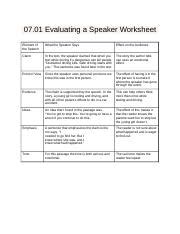 07.01 Evaluating A Speaker Worksheet. Web 07.01 evaluating a speaker worksheet element of the speech what the speaker says effect on the audience claim what is the speaker’s claim? You may think that it will never happen to you, that you'll never get.