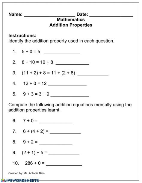 Addition Properties Worksheet. Web teach and reinforce the properties of addition with this foldable organizer, sort, and. Web printable worksheets @ www.mathworksheets4kids.com name :