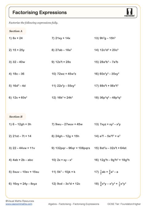Take the help of worksheet on factoring. Web prime factorization worksheets and online exercises. Web factoring is a process of splitting the algebraic expressions into factors that can be. Web online algebra worksheets cover varied topics like expressions, equations, sequence. Web january 11, 2021 by rama. Web live worksheets > english > math > algebra > expanding and factoring algebraic. Web algebra & factorization interactive and downloadable worksheets. 5 questions practice what you’ve learned,. Web this huge collection of factorization worksheets features nine types of algebraic. Unique factoring worksheets are available for grade 5 through.