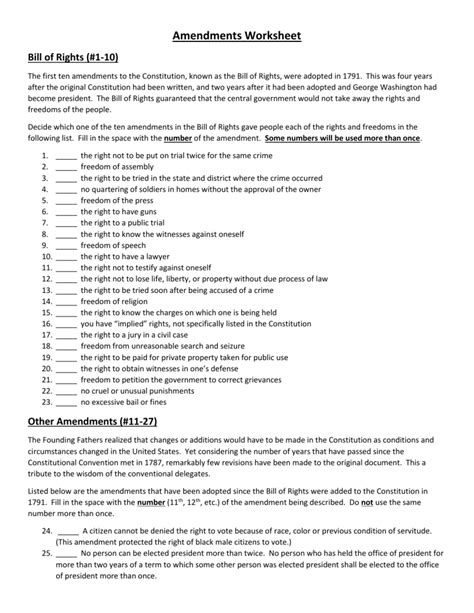 14 Best Images of Amendment Matching Worksheet 27 Amendments