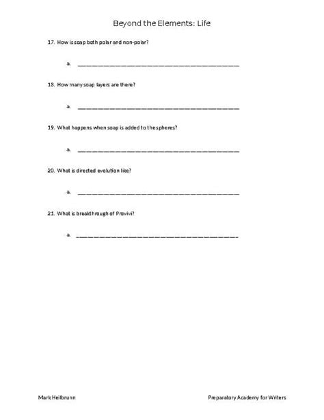 Beyond The Elements Life Worksheet. What can happen when excessive trace elements are lost from. Explain what reactions are studied in the movie.