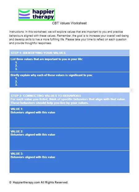These beliefs act like a lens through which every situation and life experience is seen. Beck institute for cognitive behavior therapy • one belmont ave, suite 700 • bala cynwyd, pa 19004 • beckinstitute.org. Remember, every person has a unique set of values, and there are no right or wrong answers. For example, a person who values wealth might prioritize their career, while a person who values family might try to spend more time at home. Web here's a list of 25 cognitive behavioral therapy techniques, cbt interventions, and exercises. In cognitive behavioral therapy (cbt), core beliefs are thought to underlie automatic thoughts. Discussion should be focused on which values are being met, and which are not. Basics and beyond, 3rd edition. These beliefs act like a lens through which every situation and life experience is seen. Web the statements in the following exercise are not a definitive list of all human values, however they may provide a prompt to help identify the things that are important to you now and the values that will be instrumental in supporting how you want to be in the future. Web core beliefs info sheet.