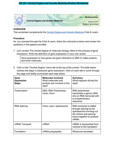 Central Dogma Worksheet Answer Key. Add to my workbooks (1) embed in my. This worksheet complements the central dogma and genetic medicine click &