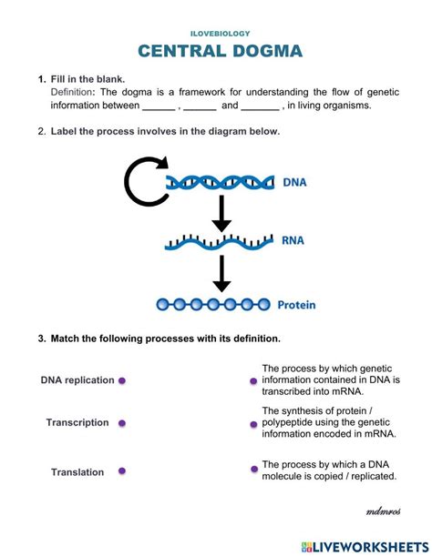 Central Dogma Worksheet. The central dogma worksheet #1: Proteins carry out most cellular activity, including control (regulation) of transcription,.