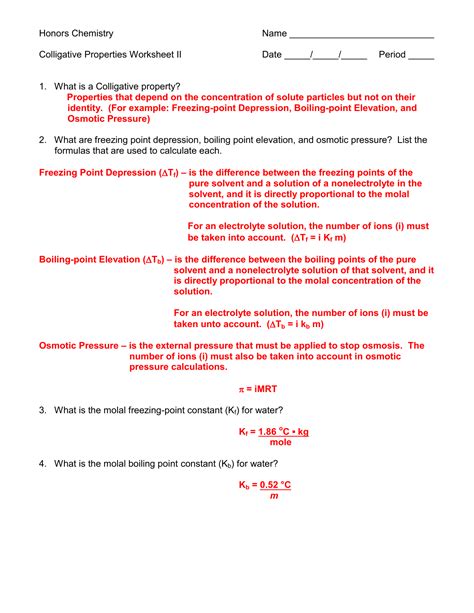 Colligative Properties Worksheet Answer Key. A given solution contains 8.10 g of a nonvolatile. If you use 3.68mol of sucrose (c12h22012) and dissolve this into 2.50kg of water, what will be.