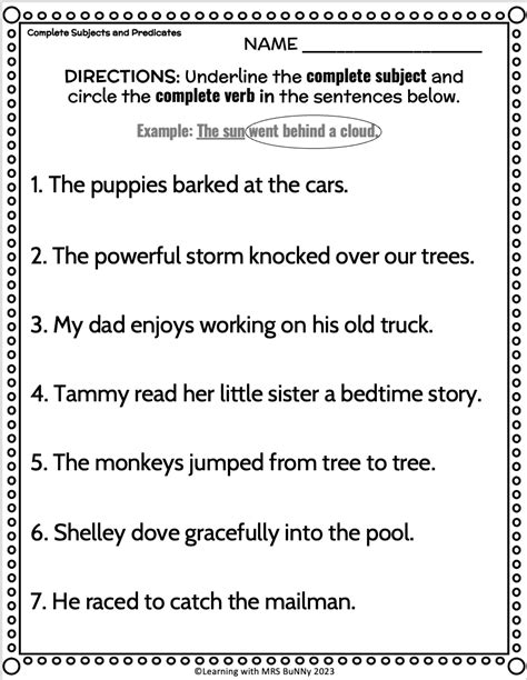 30 Complete Subject and Predicate Worksheet Education Template